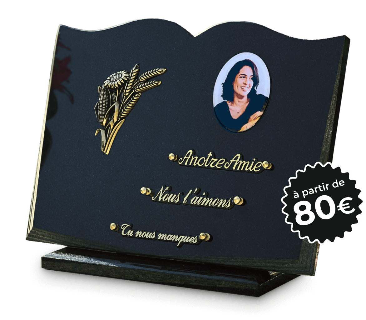 Chez plaquedeces.fr, nous comprenons l'importance de créer un hommage parfait. Voici comment personnaliser votre plaque funéraire en granit avec photo, avec des prix commençant à 55€ :