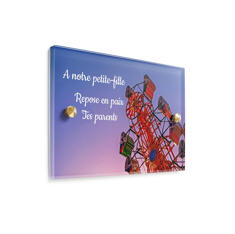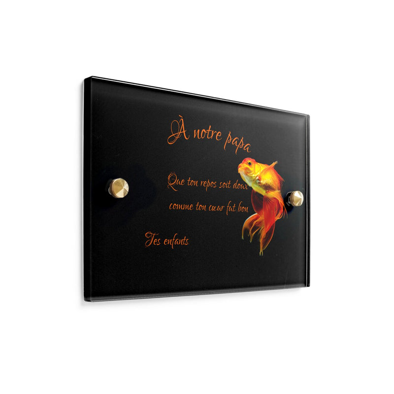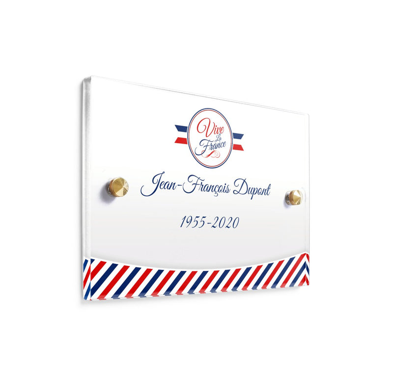 Utilisez notre éditeur pour personnaliser votre plaque et choisissez l’épaisseur et le matériau qui vous conviendra le mieux, entre l’aluminium, le laiton, le granit et le plexiglas. Choisissez le thème qui vous plait, et qui correspond à la personnalité de votre proche décédé. Une fois éditée, commandez votre plaque et profitez de la livraison gratuite et rapide.